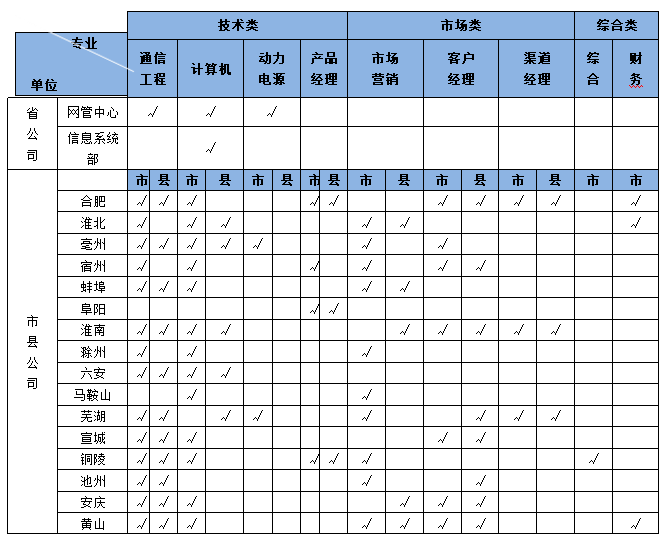 二、招聘职位及条件招聘职位:本次招聘涵盖省公司、各市分公司及部分县分公司,岗位包括通信工程、计算机、动力电源、产品经理、市场营销、客户经理、渠道经理、综合、财务等。